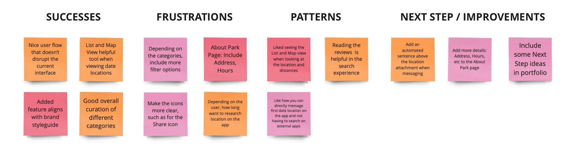 I conducted a remote usability test to observe and understand how participants interact with the new added feature when looking for a first date spot.